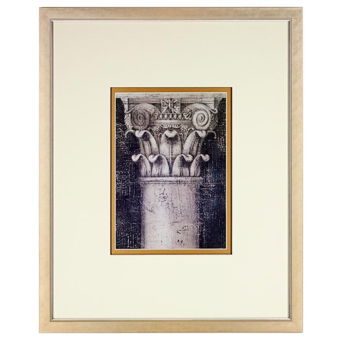 Description: offset lithograph print framed in a 7/8" florentine gold metal frame with a silver beaded lip. Also has regular glass and a double mat.