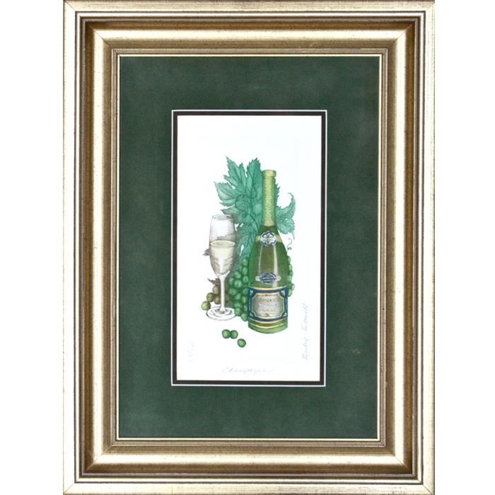 Description: Limited edition 194/750 hand colored etching. Art is framed in a 2 1/8" wide light gold wood frame. Frame also includes u.v. filtering glass and a double acid free suede fabric mat.