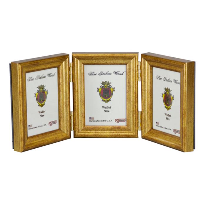F.G. Galassi 2 1/2 x 3 1/2 gold hinged triple ready made picture frame - style 13723V3