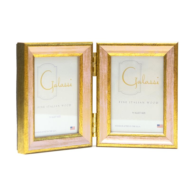 F.G. Galassi 2.5 x 3.5 hinged double gold and pink picture frame - style 14923V2