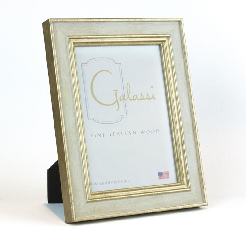 - This F.G. Galassi frame is made of wood and features an antiqued silver and gold with an off white panel which enhances images that have white colors in them. Frame will fit a 4 x 6" image or photo.