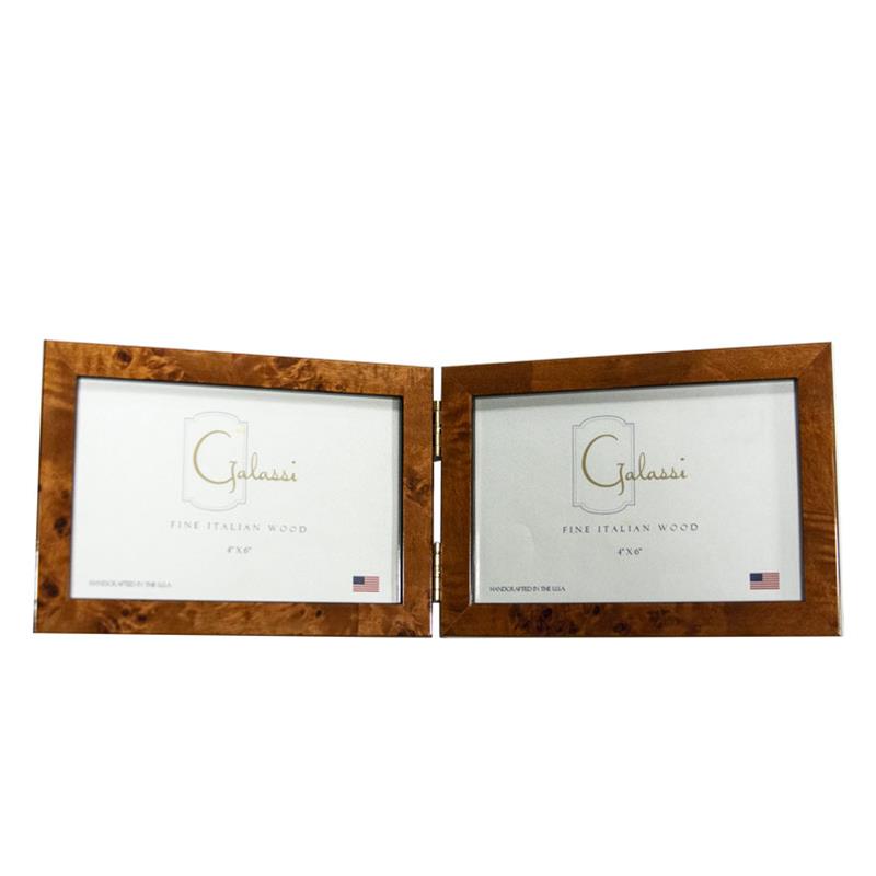 - This F.G Galassi frame features a glossy chestnut colored burl wood veneer layered over a wood frame. The inner and outer edges of frame are also painted black for a contemporary look. The beauty and richness of burl wood comes from its natural variations in grain patterns so each frame will have its own distinct look and character. Frame will fit two 4” x 6” photos or image.
