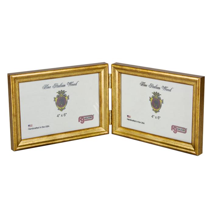F.G. Galassi 4x6 gold hinged double ready made picture frame - style 13746H2