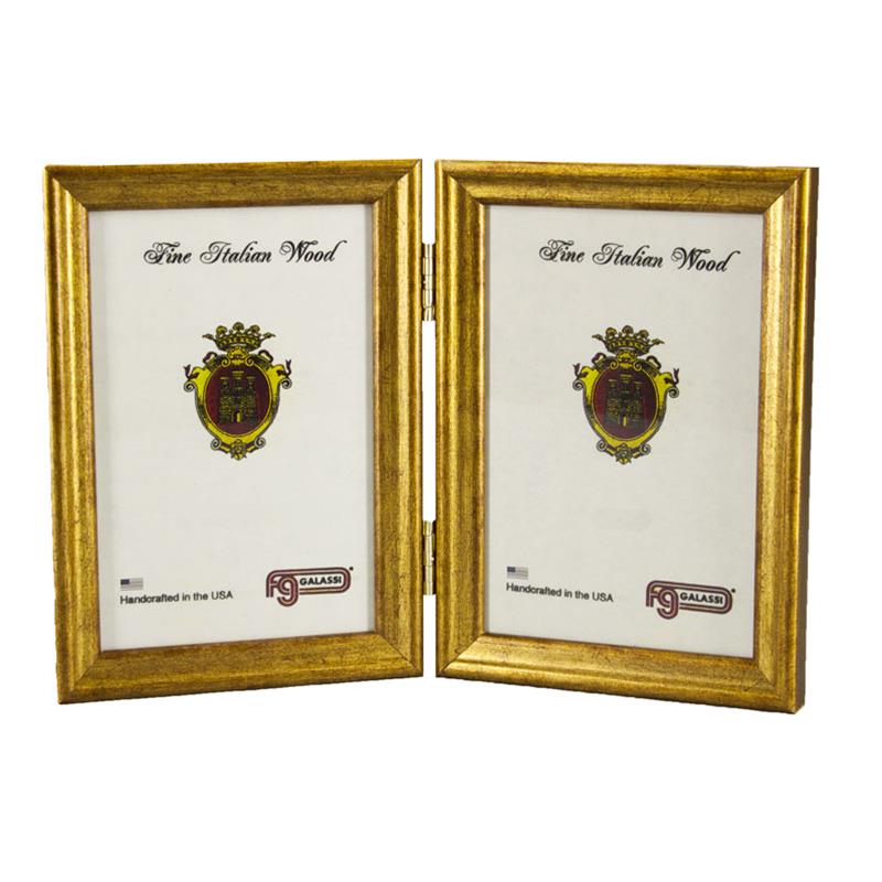 - This F.G. Galassi frame features two frames that are hinged together. Frame has an elegant gold finish that is slightly curved inward on the front. Frame will fit two 5" x 7" vertical photos or images.