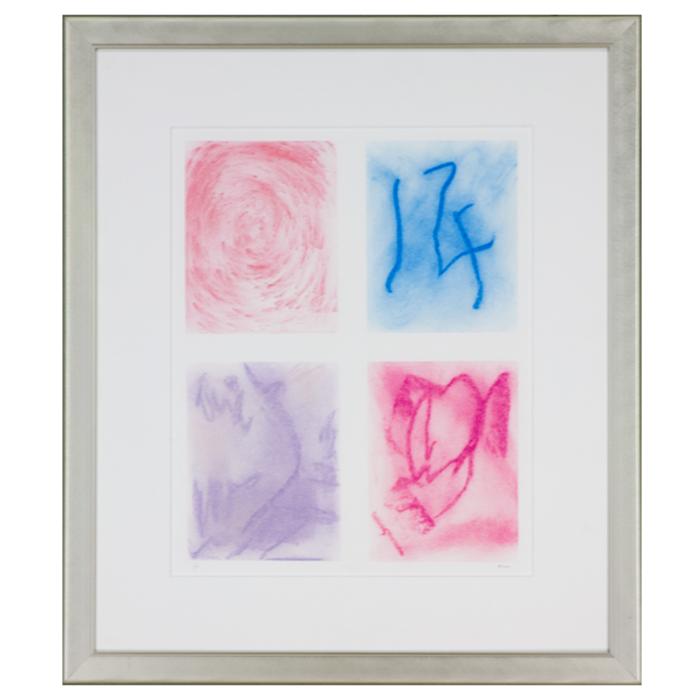 Description: Original lithograph on paper framed in a 1" wide florentine silver metal frame with U.V. filtering glass and a single acid free mat.