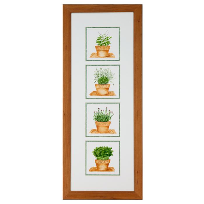 Four offset lithographs framed in a 1 1/4" natural cherry wood frame with a double four window mat and regular glass.Share