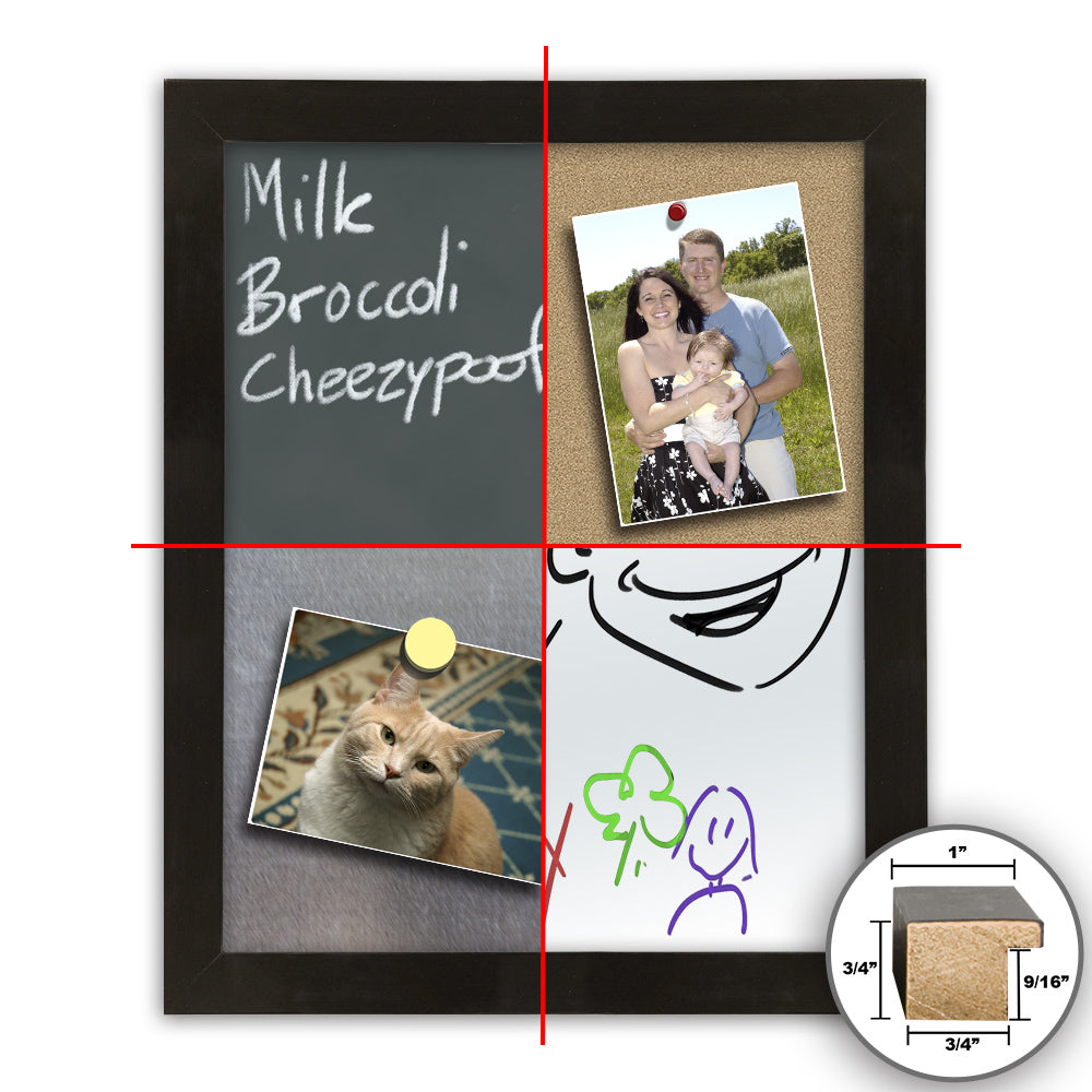 - Each framed memo board is available in cork, chalkboard, dry-erase, magnetic steel, magnetic dry-erase, and magnetic chalkboard surfaces, for whatever style of bulletin board you prefer. This Waban Collection framed bulletin board includes hanging hardware to hang vertical or horizontal on the wall.