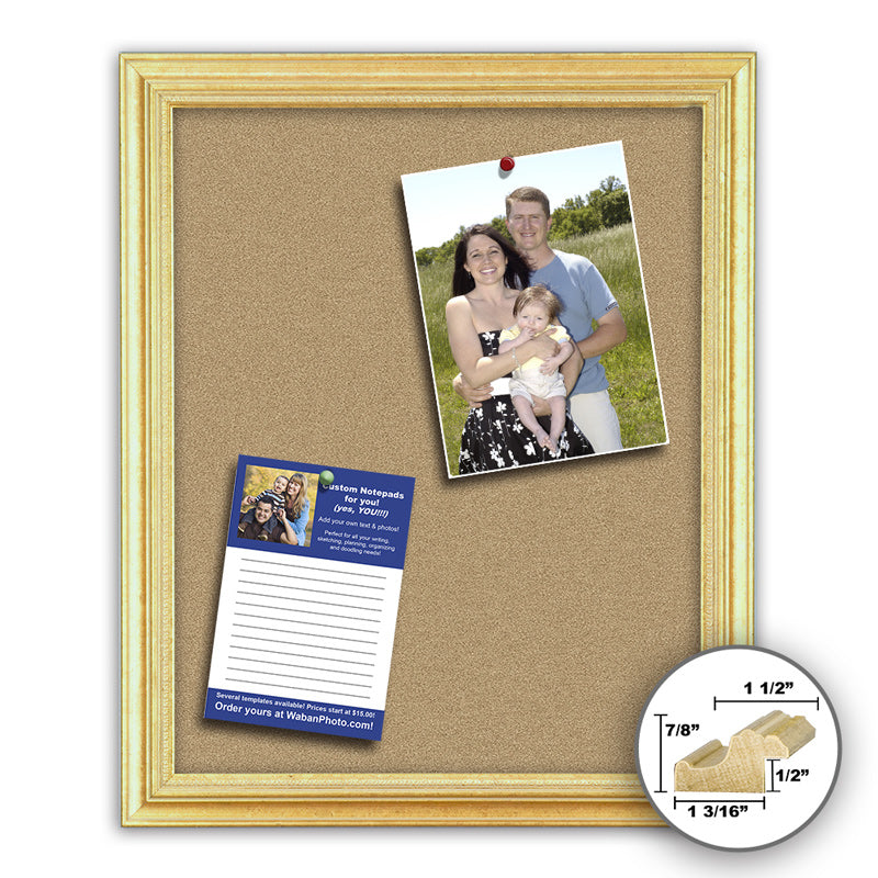 - This is one of the ready-made picture frames we make here at Frame It / Waban Gallery. Our 24x24" memo board frame is made out of solid real wood and features an elegant reverse cove profile with decorative ridges and a warm, bright leafed gold finish. This gold wood 24x24" framed memo board is both stylish and functional, and works great alongside artwork or photos.