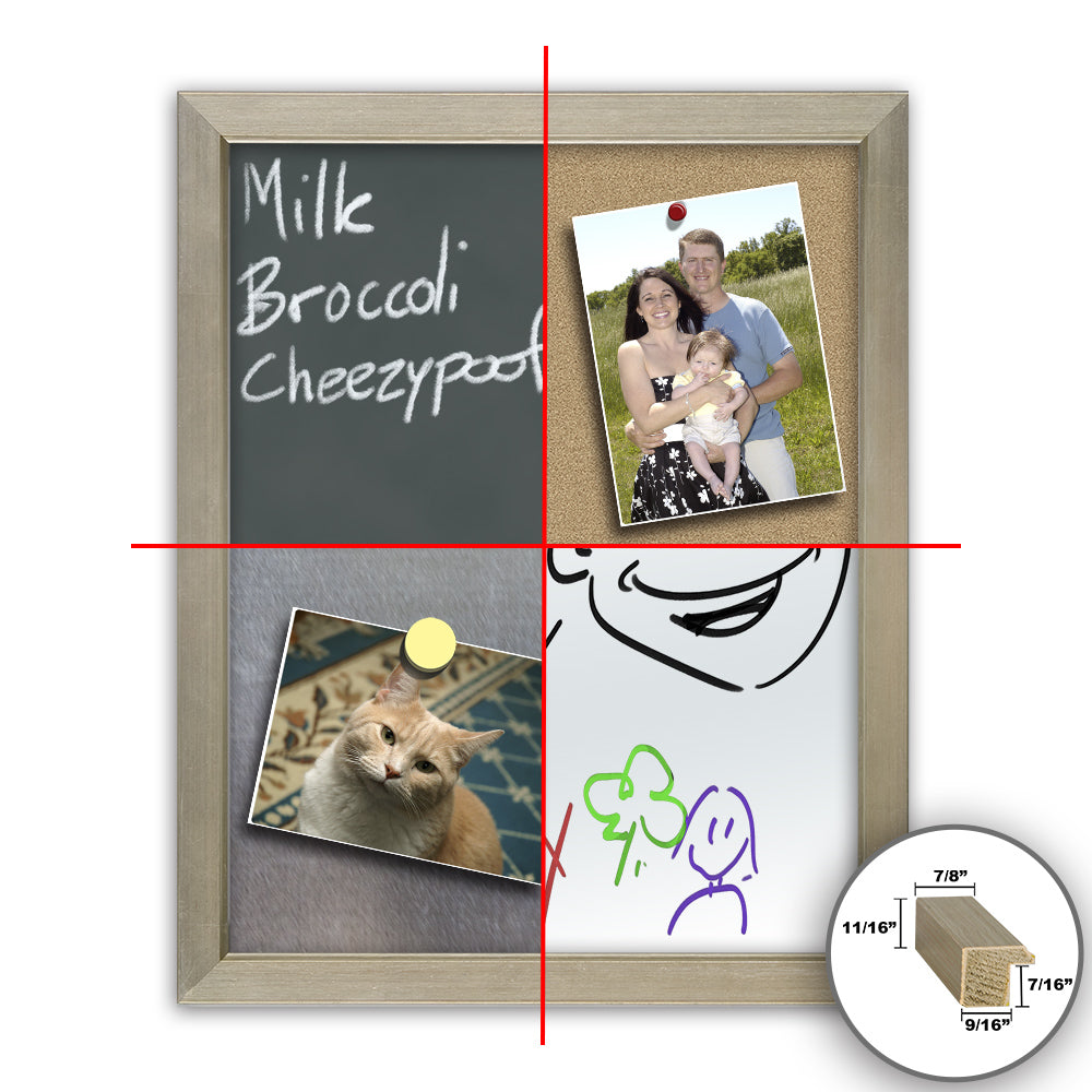 - This is one of the ready-made picture frames we make here at Frame It / Waban Gallery. Our 24x30" memo board frame is made out of solid real wood and features a flat profile and a bright leafed silver finish with a slightly recessed inner lip. The frame moulding is finished with hand-applied silver leaf for a rich look and feel. This silver wood 24x30" framed memo board is both stylish and functional, and works great alongside artwork or photos.