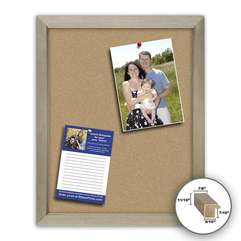 - This is one of the ready-made picture frames we make here at Frame It / Waban Gallery. Our 24x36" memo board frame is made out of solid real wood and features a flat profile and a bright leafed silver finish with a slightly recessed inner lip. The frame moulding is finished with hand-applied silver leaf for a rich look and feel. This silver wood 24x36" framed memo board is both stylish and functional, and works great alongside artwork or photos.