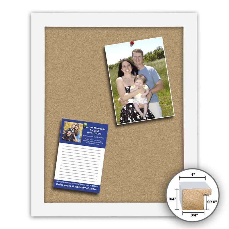 - This is one of the ready-made picture frames we make here at Frame It / Waban Gallery. Our 20x30" memo board frame is made out of solid real wood and features a flat profile and a smooth, matte white gallery-style finish. The frame moulding is finished with hand-applied white leaf for a rich look and feel. This white wood 20x30" framed memo board is both stylish and functional, and works great alongside artwork or photos.