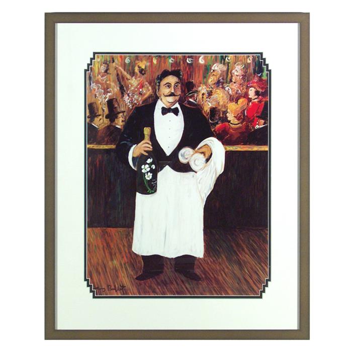 Offset lithograph framed in 7/8" wide aged brown metal frame with regular glass and a special corner cut double acid free mat.