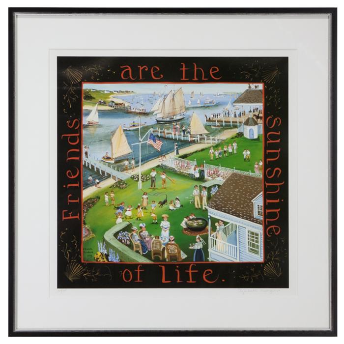 Offset lithograph limited edition print framed in a ½" wide beaded black metal frame with U.V. filtering glass and a single acid free mat.