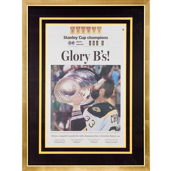 Description: Page D1 of the Boston Globe the morning after the Boston Bruins became 2011 Stanley Cup winners. This special-insert cover features captain Zdeno Chara kissing the trophy during the post-game celebration.