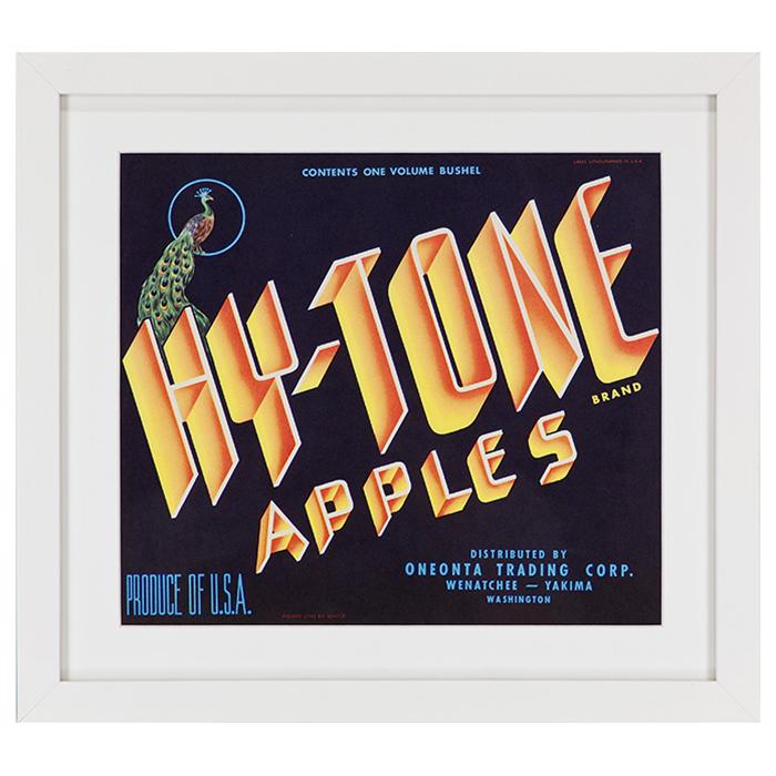 Description: This is an original print advertisement for Hy-Tone Apples. The picture is framed in a 3/4" wide white wood frame. Framing also includes U.V. filtering glass and a single acid free mat.