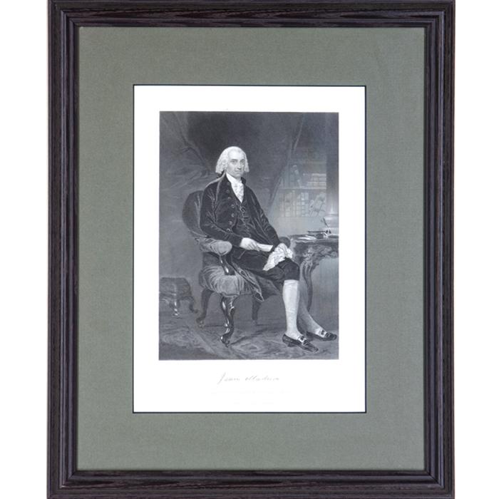 Description: This is an original etching created from a painting by artist Alonzo Chappel. The picture is framed in a 7/8" wide aged walnut wood frames with faint blue lines around the edges. Framing also includes U.V. Filtering glass and an acid free mat with a black bevel.