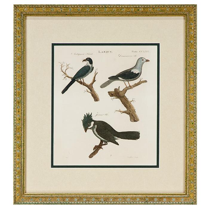 Old book page framed in a 3/4" wide antiqued gold wood with floral detailing. Also framed with U.V. filtering glass and a double acid free mat.