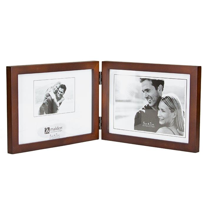 Malden 5x7 walnut hinged double ready made picture frames - 6418-57DH