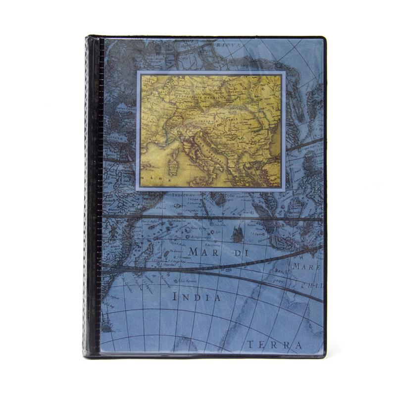 This Pioneer lightweight, acid-free photo album includes 18 clear, top-loading pocket pages which hold up to 36 vertical 4"x6" prints. The thin-but-rigid plastic cover ships in a variety of vintage-map-themed colors and styles.