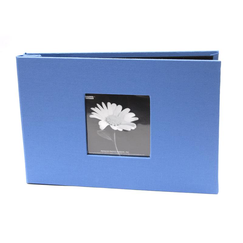 These compact Pioneer albums are still big on style! The bright-colored, linen-wrapped covers feature a keyhole window in the cover for a photo. The interior pages feature acid free clear plastic pockets with a black background that photos easily slide into.