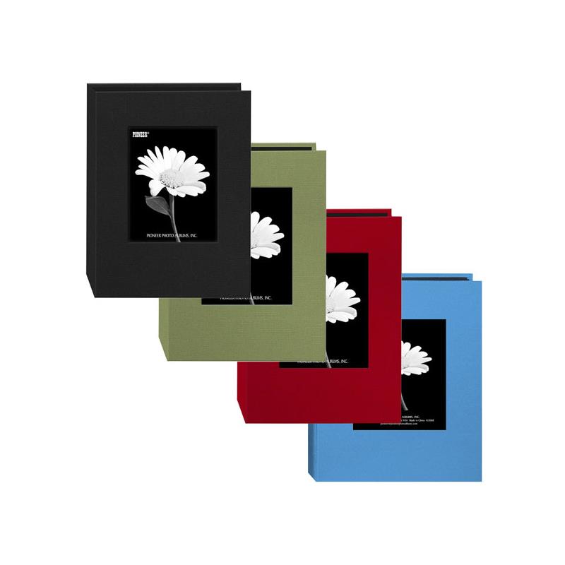 These compact Pioneer albums are still big on style! The bright-colored, linen-wrapped covers feature a window in the cover for a photo. The interior pages feature acid free clear plastic pockets with a black background that photos easily slide into.