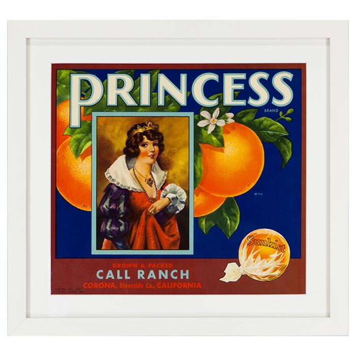 Old advertising print framed in a 3/4" wide white wood frame. Framing also includes U.V. filtering glass and a single acid free mat.