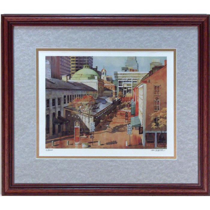 Description - Limited Edition Giclee print framed in a 1" aged mahogany red wood frame. Frame features U.V. filtering glass and an acid free double mat.