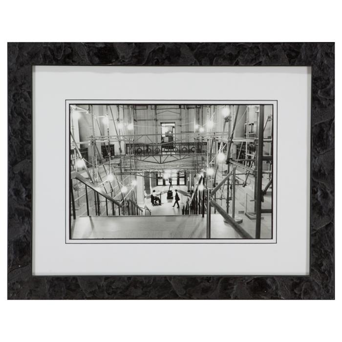 Description: Silver gelatin photograph framed in a 1 5/8" wide rocky black slate wood frame with U.V. filtering glass and a double black core mat.