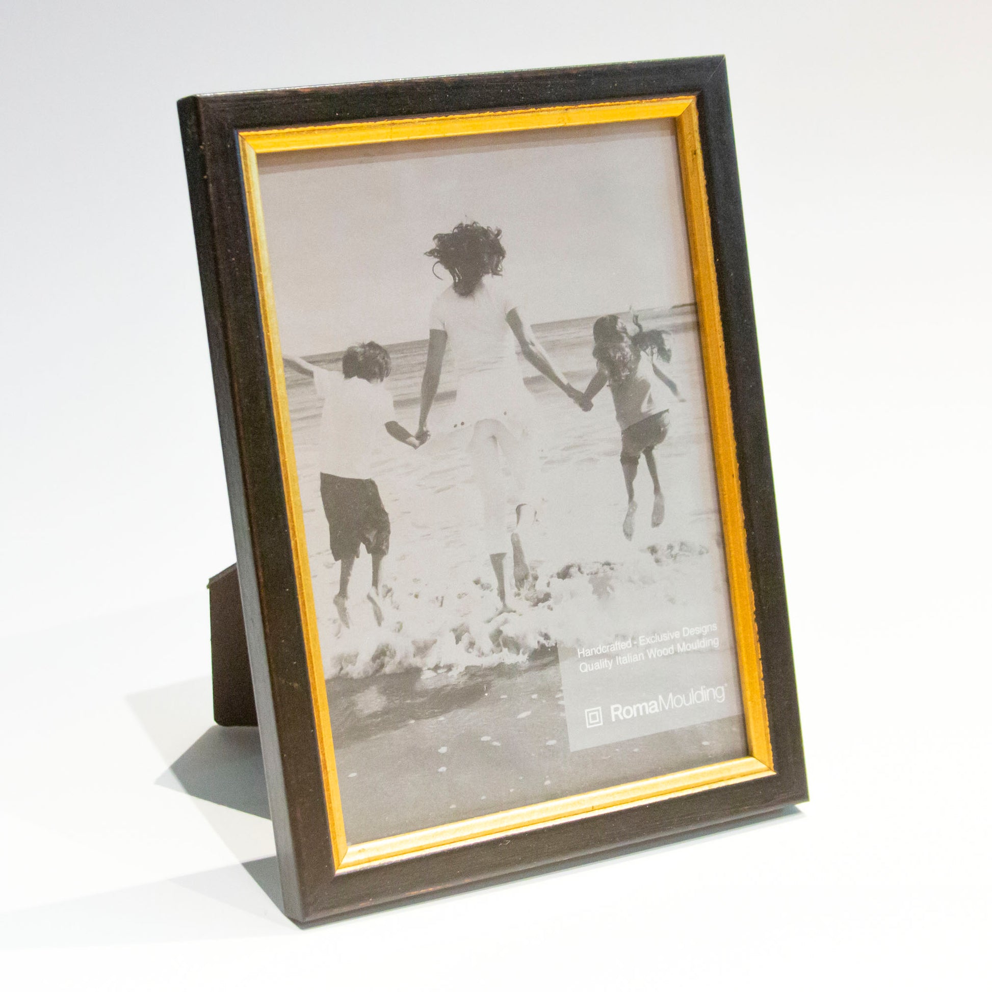 - This ready made frame from the Roma Cortona line is made from solid wood. Its distressd black finish is accented by a rounded, distressed gold inner lip. Frame will fit a 4x6” photo or image.