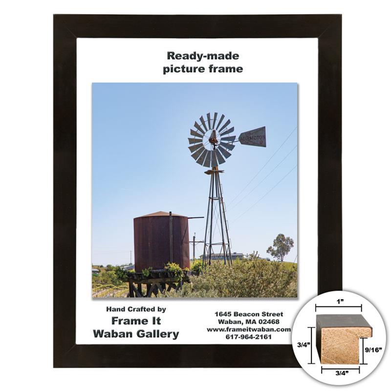 - This is one of the ready-made picture frames we make here at Frame It / Waban Gallery. Our 12x18” picture frame is made out of solid real wood and features a gallery-style square profile with a smooth matte black finish. This ready made black 12x18” picture frame works great with artwork or photos.