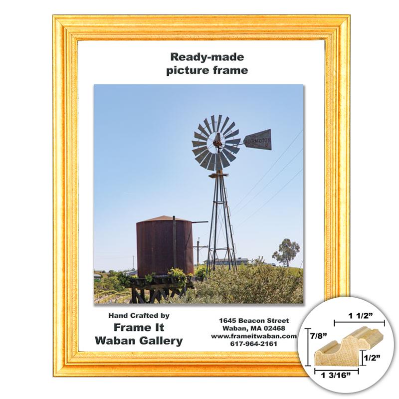 - This is one of the ready-made picture frames we make here at Frame It / Waban Gallery. Our 8½x11” picture frame is made out of solid real wood and features an elegant reverse cove profile with decorative ridges and a warm, bright leafed gold finish. This ready made gold 8½x11” picture frame works great with artwork or photos.