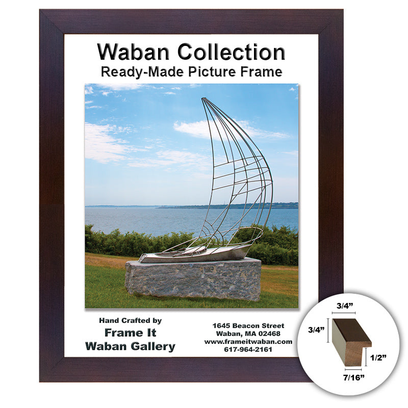 We have hand picked an assortment of nicely finished frame mouldings for our Waban Collection ready made picture frames. The frames have been chosen for their quality, finishes and value. All our Waban Collection picture frames are made out of wood, we don't have any particle board, plastic or sticker frames in this collection! You get a high quality custom made picture frame at a ready-made savings.