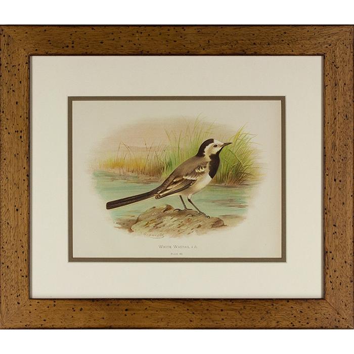 Old book page framed in a 1 1/2" wide pitted natural wood frame with U.V. filtering glass and a double acid free mat.