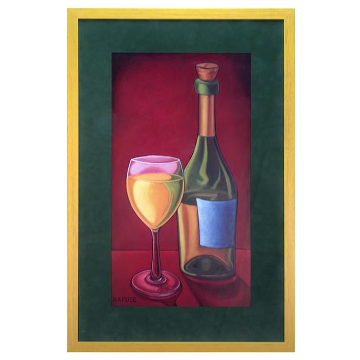 Description: Reproduction print framed in 1" wide yellow painted-wood frame with UV-resistant glass and single suede fabric acid free mat.